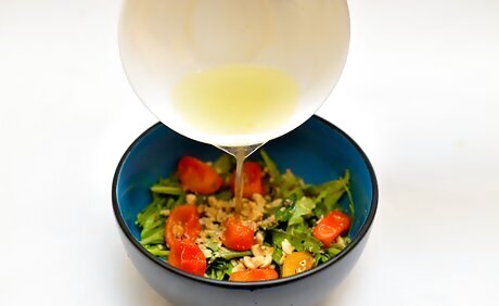 Pour 1/4 cup of the dressing over the salad. You can add more dressing if it suits you.