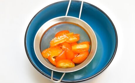 Drain the kumquats through a sieve. Set the sieve over a bowl to collect the syrup.