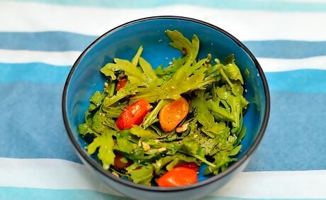 Make the dressing. Whisk together 1/4 cup of olive oil and the juice from one lemon. Season this mixture to taste and keep stirring until the ingredients are combined. You can do this while the kumquats are roasting.