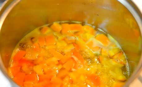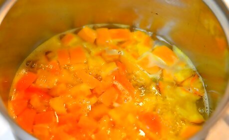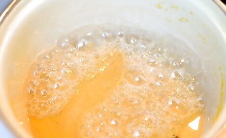 Return the fruit to a pan and bring it to a boil again. Boil the mixture and stir occasionally until the mixture begins to look like gel -- this will happen when the temperature of the marmalade reaches 222ºF (105ºC).