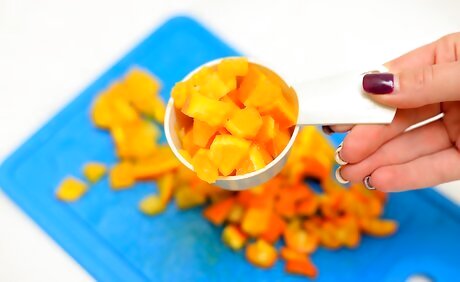Measure the fruit in measuring cups. The measurement will vary depending on the size of the kumquats and oranges.