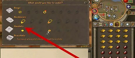 Start making the amulet. Once your crafting level is at least level 8 to make gold amulets, you are ready to move on. You will need a mold from crafting store in Al-Kharid. Use the gold bar on the furnace (the gold bar), and make them into an amulet. It's that easy.