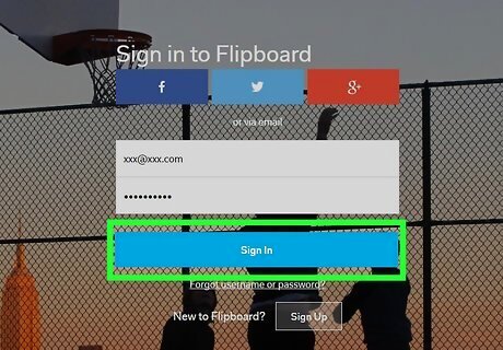 Sign in to your Flipboard account. If you signed up with a username and password, enter that information now and click Sign In. If you sign in with Facebook, Twitter, or Google, click the associated icon to sign in with that method.