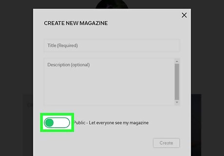 Select a privacy level. Slide the switch to the On (green) position to make your magazine public, or to the Off (gray) position to keep it private.