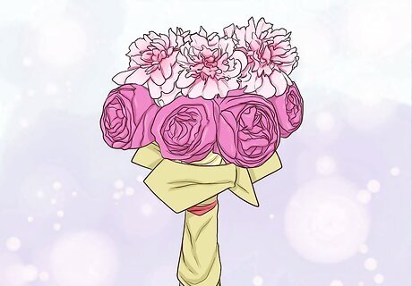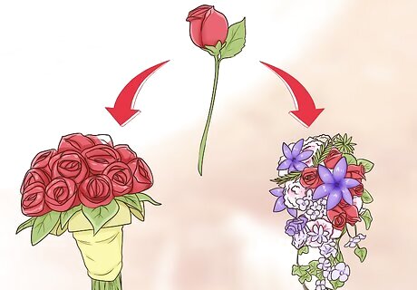 Seek professional advice. If you've never assembled your own bouquet before, professional guidance is recommended. A wedding planner or florist can give you advice on which flowers pair well together and what sort of shape would best match your vision for your special day. It may be particularly helpful to seek professional advice if you're going for a more complicated bouquet shape. Something like, say, a cascade effect may be best achieved via professional services.