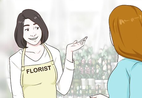 Find a provider. Spend some time visiting florists in your town to find a solid provider. You can also look into online sellers or even grocery stores if local florists are too expensive. You should do some general research first. Figure out roughly how many flowers you need and what type you want. This can help you figure out which providers work best with your budget.