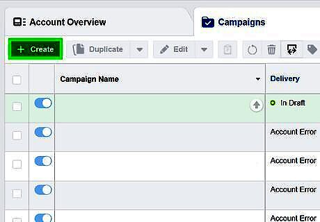 Click Create. It's the green button in the upper-left corner above the list of campaigns.