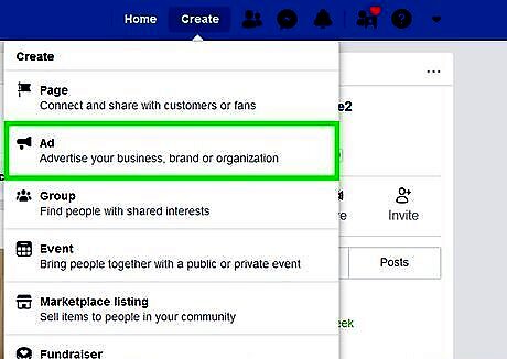 Navigate to https://www.facebook.com/adsmanager using a web browser. You can use any web browser on PC or Mac. This is Facebook's ad manager page. You can also log into your Facebook page and click Create. Then select Ad in the drop-down menu.