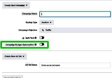 Turn on "Campaign Budget Optimization" (optional). If you wish to optimize your budget across all ad sets, click the toggle switch next to "Campaign Budget Optimization".
