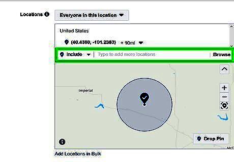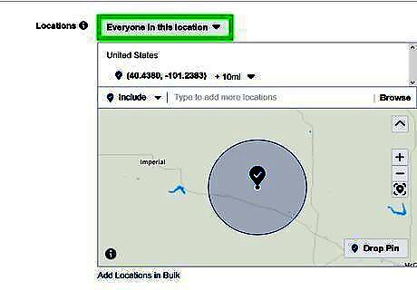 Define your audience location. Use the drop-down menu next to the section that says "Locations" to select one of the following: "Everyone in this location", "People who live in this location", "People recently in this location", or "People traveling in this location".