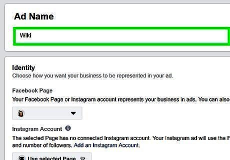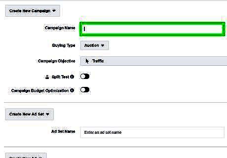 Type a campaign name. Use the text box at the top of the form to type the name of your ad campaign. If you already have an existing campaign, you can click the drop-down menu in the upper-left corner of the form and select Use Existing Campaign.