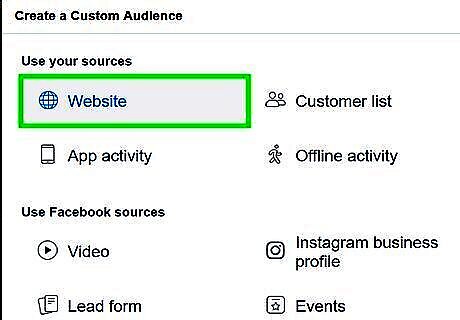 Click Custom Audience or Lookalike Audience. Select "Custom Audience" to reach people who have already interacted with your business. Select "Lookalike Audience" to reach people with similar interests to people who have interacted with your business. If you select "Lookalike Audience", you will need to select an existing audience and data source, as well as a location, and what percentage of the population you want to reach in the area.