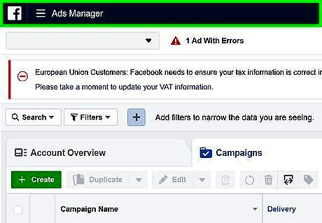 This wikiHow teaches you how to create ads on Facebook. You can use Facebook ads to boost a post, promote a Facebook page or external website, as well as create a form to help you get leads. Before you create a Facebook ad, you need to create a new ad campaign from Facebook's ad manager page.