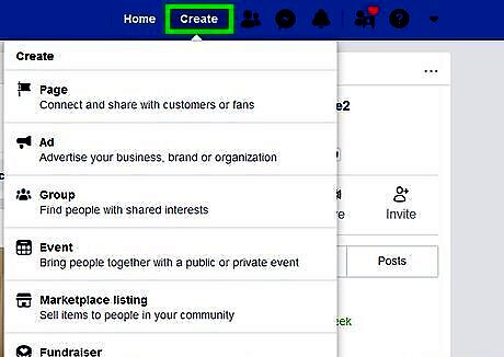 Click Create. It's at the top of your Facebook page on the right side. This displays a drop-down menu.