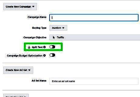 Turn on "Create Split Test" (optional). If you wish to create more than one campaign and test your ad sets against each other, click the toggle switch next to "Create Split Test".