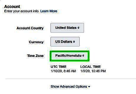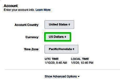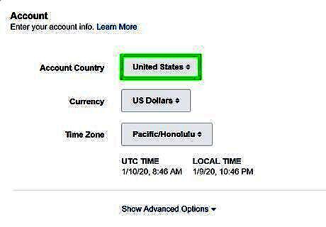 Select the country your account resides in. Use the drop-down menu at the top of the page to select what country you are creating an ad campaign for.