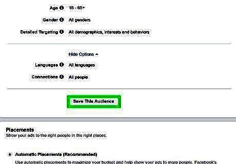 Click Save This Audience and confirm your target audience. After you entered all your target audience details, click Save This Audience below the audience section of the form. Then click the blue button that says Save in the pop-up to save your details.