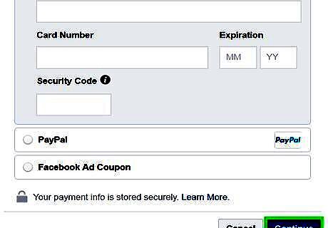 Select a payment method. You can pay for your ad using a credit or debit card, PayPal account, or online banking account. Click the radial button next to the payment method you prefer to use. If you are paying with a credit or debit card, enter the card number, expiration date, security code, and zip code in the spaces provided.
