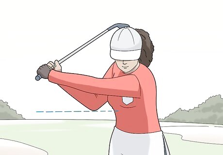 Move the handle of the club first to start your backswing. Begin to bring the club behind you by first moving your hands and the handle of the club. Use a smooth and fluid motion. The clubhead will lag behind slightly as you start your backswing. Avoid snappy or jerky movements or you may miss the ball or send it off target.