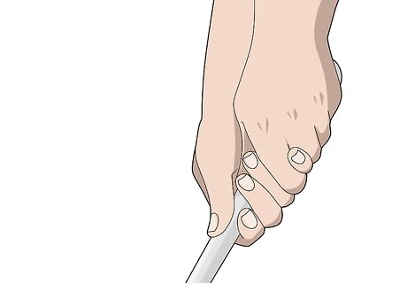 Place your dominant hand about halfway down the grip. Rest your other hand beneath the shaft of the club about halfway down the grip so there’s about a 6 in (15 cm) space between both of your hands. Wrap your fingers and thumb around the grip to take a sturdy hold of the club. The grip will resemble a wide grip on a baseball bat.