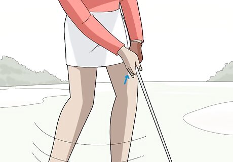 Practice this motion with your normal grip to improve the angle in your wrists. Once you’ve got a sense of what the correct angle of your wrists feels like, grip the club like you normally would during a round of golf. Repeat the exercise with your standard grip and focus on maintaining the proper angle in your wrists. The right angle in your wrists will force your hands to move first during your swing, which causes the club to lag behind.