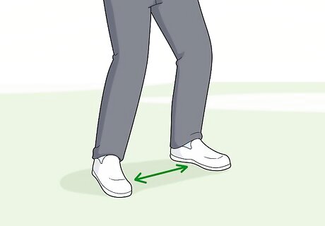 Stand with your feet shoulder-width apart with your knees slightly bent. Take a comfortable stance with your weight evenly distributed on both of your feet and space them about shoulder-width apart. Flex your knees slightly so you can achieve greater rotation and your swing is more fluid. You don’t need to use a golf ball to practice finding the right angle for your wrists.