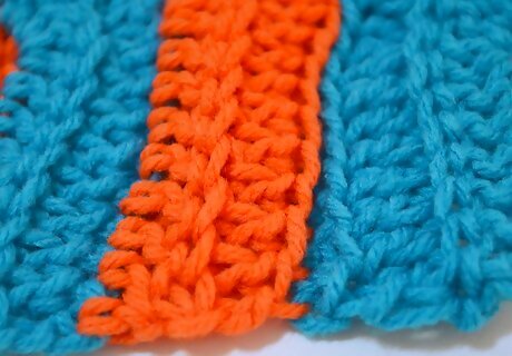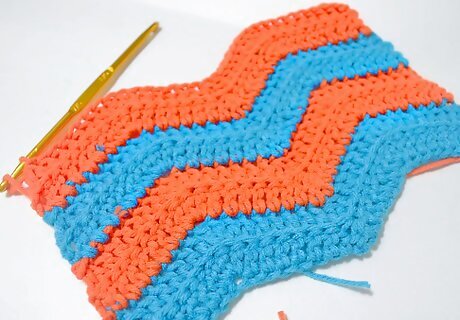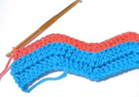 Swap colors every two rows. Change colors, alternating back and forth between A and B, following the same technique used to change colors the first time. Always change colors before completing the turning chain. Do not change after creating the turning chain. Make sure that your scarf ends with two rows of yarn B.