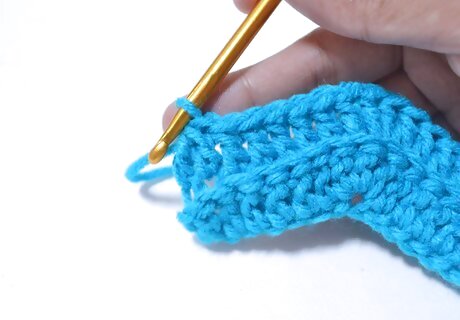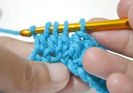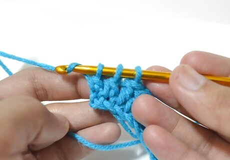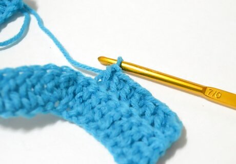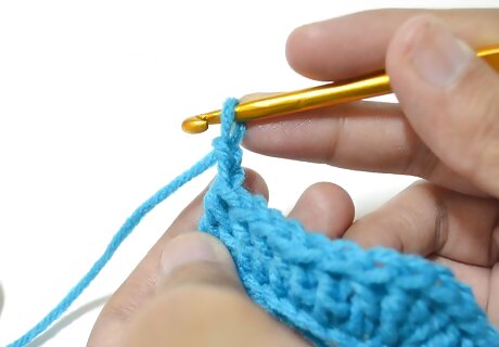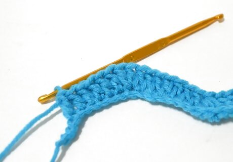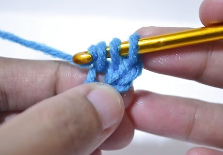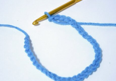 Chain two. Work two chain stitches from the loop on your hook. These chain stitches act as a "turning chain." In other words, they set the row height for your next row. After completing this turning chain, the first row is finished. Turn the work before continuing to the next row.