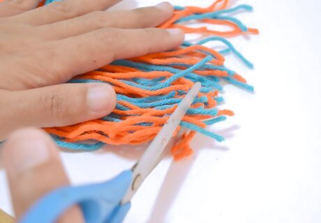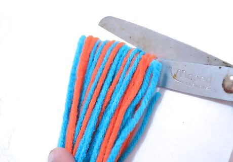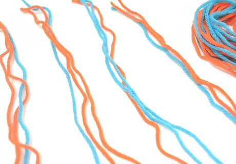 Cut 60 lengths of fringe. Cut 60 pieces of yarn, each measuring 12 inches (30.5 cm) long. Of these 60 pieces, 30 should be from yarn A and 30 should be from yarn B.