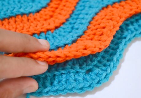 Slip stitch the ends together. Work a slip stitch into each set of stitches along the ends of the scarf. Continue from one side to the other. To slip stitch two stitches together: Insert the hook into the opposite stitch. Yarn over the hook once. Pull the yarn-over through the loops on your hook.