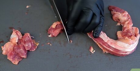 Cut the chain into pieces for a variety of recipes. Dress up your flavorful chain pieces in any number of recipes. Try marinating them in teriyaki sauce and skewering them for Asian-style kebabs. Consider pan frying them with butter and herbs for a French approach or try them braised along with mushrooms in red wine for a hearty satisfying dish. Get the most out of your tenderloin by making use of the all the trimmings. The chain may be fatty, but it also contains a lot of flavorful meat. Search online for more ideas or let your creativity run wild.