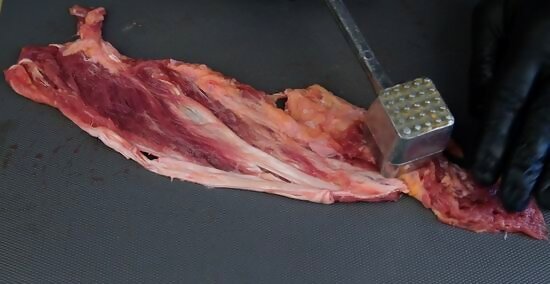 Pound the chain into a flat piece for marinating and stir-frying. Using a meat pounder, hammer out the chain into a flat piece against your cutting board. Slice it into strips. Marinate and use in quick-cooking dishes, like stir-fry.