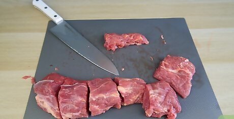Use a meat grinder to create ground beef out of all your trimmings. With a meat grinder attachment for your stand mixer, turn trimmings into ground meat for burgers, sausages or meatloaf. Attach the grinder to the mixer and fill the grinder with 2–3 inches (5.1–7.6 cm) pieces (or smaller). Place a bowl under the grinder and turn it on. Allow the meat to fall out of the grinder and into a bowl. Treat the ground meat as you normally would. For example: shape it into burgers, make Salisbury steaks, or add to pasta sauce.