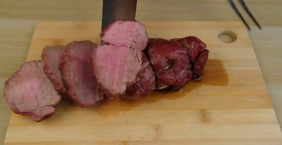 Use a chef’s knife or meat slicer to carve the cooked roast. The secret to carving any roast is to cut across the grain of the meat. Once your roast has cooked and rested, lay it out on your carving board. Because the tenderloin fibers run lengthwise, you can slice the roast into round portions in your desired thickness.