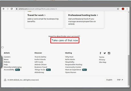 Click Take care of that now. It's at the bottom of the Account Settings page below the text that says "Need to deactivate your Account?".