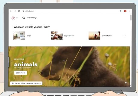 Navigate to https://www.airbnb.com/. This will open the Airbnb home page. If you aren't logged into Airbnb, click Log In in the top-right corner of the page, enter your email address and password (or select a login option), and click Log in.