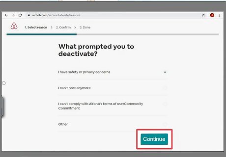 Select a reason and click Continue. Click the reason that best resembles why you want to deactivate your account and click the blue button that says Continue. If none of the reason match your reason for wanting to leave, click Other and type a brief explanation for why you want to deactivate your account.