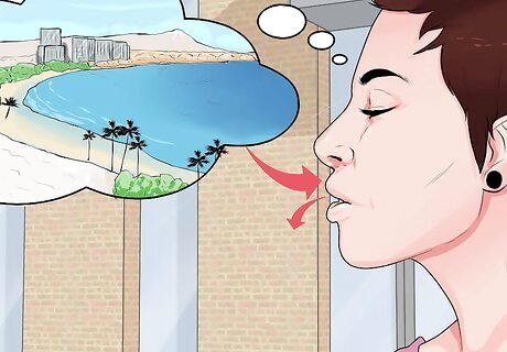 Use positive visualization. Positive visualization can be a form of meditation. Positive visualization and meditation can help relieve stress, which can help ease discomfort and lessen pain. Pick a favorite spot and get comfortable. Remember a favorite place. Close your eyes and picture that place. Keep the image in your mind. Breathe deeply as you keep the picture in your mind. Don’t worry if you lose the image. Just take a breath and start again. Until you have some practice, you may need to start again a few times. Try and make sure you do this during a time that you are least likely to get interrupted. Look into doing guided imagery through YouTube videos or apps.