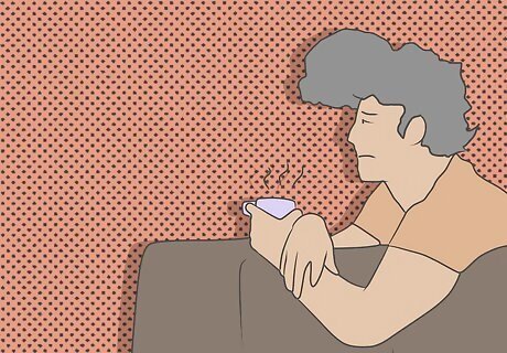 Drink something hot. Consuming something hot can make your blood pressure decrease and help you to calm down. Coffee, hot chocolate or tea works for this. Slowly drink it and concentrate on the taste. Have tiny snacks such as one vanilla wafer, three almonds, 2 small saltine crackers, half an apple or one small mint.Deal With Worry Step 4Bullet1.jpg