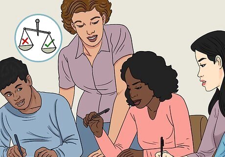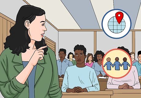 Plan classroom activities that challenge non-inclusive thinking. Do activities in the classroom that help students to perceive their environment differently. For example: Make a Classroom Constitution where students suggest the rules the class will follow to function, and everybody agrees to them. Ensure your teaching materials come from a diverse group of people (race, background, class, religion, gender, etc.).. Create a physical space that showcases many ways of being in the world: include pictures of different kinds of people, local leaders etc. that might be outside of the conventional canon. Have students research the maps of their towns replacing male names (of streets, buildings etc.) with the names of women who have shaped local history (e.g Rebecca Solnit’s work on NYC). Invite speakers to come to address the students who provide perspectives that may be missing from the curriculum. Have students design commemorative monuments of alternative histories and justify their choice of symbols, location, etc. Give practical assignments that include making YouTube videos instead of writing essays, or directly engaging with the public. Consider giving students training in forums such as the Op-Ed Project. Assign texts in non-Roman script such as Hindi, Arabic, Thai or Amharic. Let students use online tools to translate them. This helps students experience other ways of knowing that Roman-script learning - especially in English - often precludes.