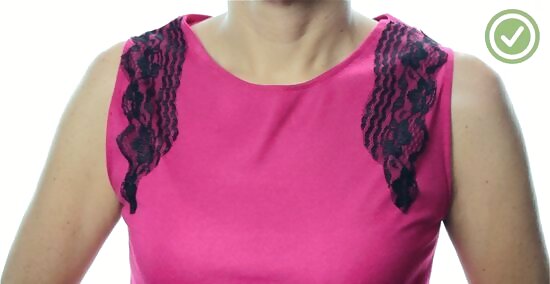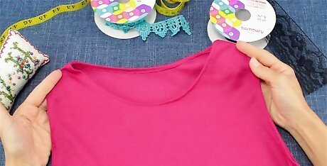 Turn the shirt inside out, and trim off any excess lace, if necessary. Some shirts have a much narrower bottom hem. You may have some excess lace peeking over the top of your stitching. If this is the case, trim that excess lace off as close to the stitching as you can. When you are done, turn the right-side out.