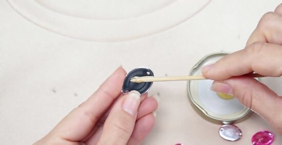 Keep gluing the rhinestones on until you are done, then wait for the glue to dry completely. How long the glue takes to dry depends on what you are using. Read the label on the bottle for specific drying times. It is typically a few hours.