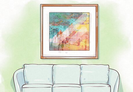Hang paintings. You can easily choose or make paintings that reflect the style of your dining room. Mix or match painting styles to create a gallery-type wall. Play around with grouping the paintings until you find an arrangement that you like. Or choose one large painting to be the focal point of a wall. You can also hang photographs instead of paintings or hang a mixture of paintings and photos. For example, hang black and white photographs with colorful paintings.
