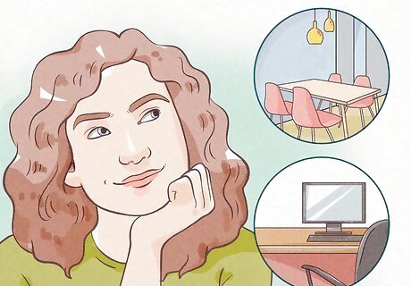 Decide how you're going to use the room. Some people only use their dining rooms for formal get togethers while others eat in them every day. Think about how often you plan on using the room and what kind of atmosphere you want it to be. For example, if you frequently host small gatherings, you may want to create a cozy, warm dining room. You could hang family photos and/or souvenirs from your travels on the walls. Choose durable and/or multifunctional pieces if you use the room as a workspace or if children use the room.