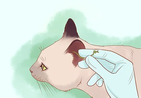 Remove any foreign bodies. If something is lodged inside the ear, like a piece of grass, your vet will need to extract the foreign bodies. The cat will be sedated or put under anesthesia. The vet will remove the item from the ear. You will have to give your cat prescribed medication to heal the infection.