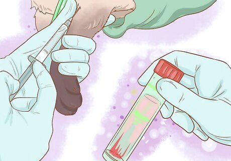 Check the ear. If the vet suspects an ear infection, they will use an otoscope to check the inside of the ear. The instrument helps magnify and provide light on the inside of the ear so they can get a good look at the middle and inner ear. They will also be able to tell if the eardrum is still intact. During the examination of the ear, the vet will also be to see if there is something lodged in the ear. They will also check for tumors.