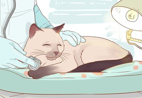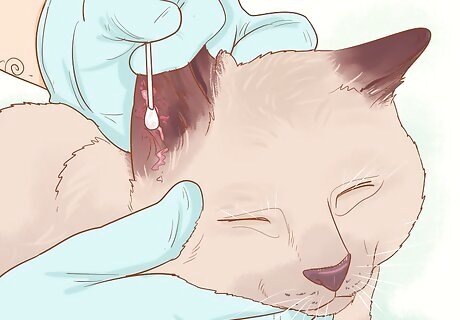 Sedate the cat if necessary. If your cat has an ear infection that is severe, the vet may have to sedate the cat or put them under anesthesia. This only occurs if the cat is in too much pain for the vet to touch the ears, or if discharge or swelling blocks the view inside the ear. The risks of sedating your cat include allergic reactions, swelling at the site of the injection, and in rare cases, death. However, most cats go under sedation without any problems. Talk to your vet about your cat's health and age to determine if sedation is right for them. If your cat has a severe infection or has something lodged in their ear, removing it or cleaning the ear without sedation can be too painful, so sedation helps reduce this pain risk for your cat.