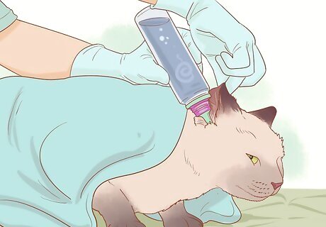 Give your cat antibiotics. If your cat has a severe infection, the vet will prescribe oral antibiotics or antibiotics that need to be injected. This is usually given along with topical antibiotics, antifungals, or antiparasitics that you put directly on the ear. The vet may also prescribe ear drops, sprays, or creams to put on the ear.