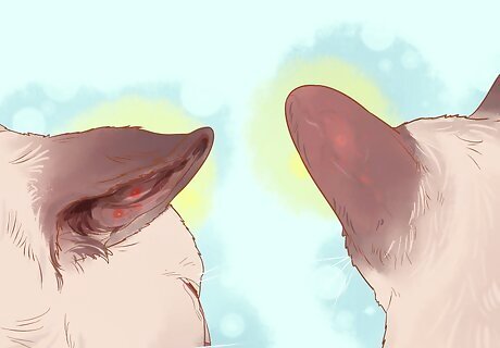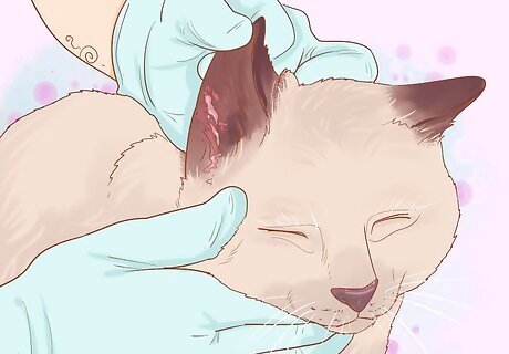 Check for any redness and swelling. Your cat’s ear may be red due to the infection or constant scratching and rubbing. The skin inside the ear and around the ear canal may also be irritated and red. The skin of the ear may also be swollen. Check for any red nodules or blood-filled pockets inside the ear. Also look for scabs behind or around your cat's ear. The ear could also be hot to the touch.