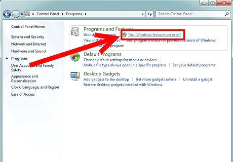 Under "Programs and Features" click "Turn Windows Features on or off"